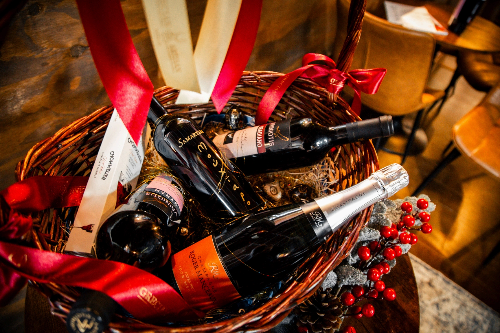 The most Luxurious Selection of our Finest Aged Red Wines and an exceptionally unique bottle of French Champagne with our deliciously Handcrafted Chocolates.